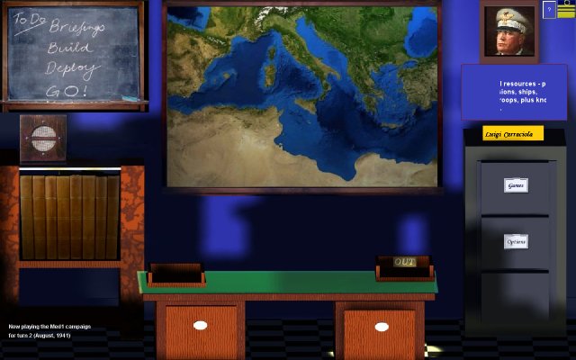 The screen below shows this game ready to play, as at turn 2. (A new feature in version 1.1 is the addition of information at the bottom left of the screen that tells you the name of the campaign you currently are playing, and the current turn number and date.)