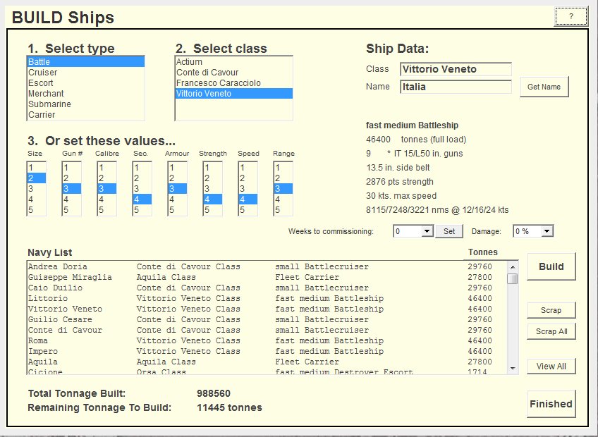 Once you are ready, building ships is very easy. You can select historical ship designs, or modify them, or even create your own entirely new designs, all with just a few mouse clicks.